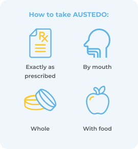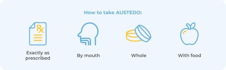 For additional information about how to take AUSTEDO XR, please read the Medication Guide. Ask your healthcare provider if you have any questions about taking AUSTEDO XR.